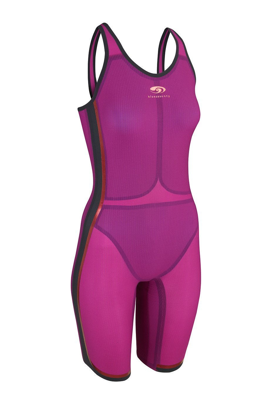 The nero R10 is our fastest suit ever. It features our exclusive copper-infused fabric, and takes advantage of new FINA regulation changes with a double-layered design. This design provides maximum compression and promotes a neutral body position, reducing drag. This suit is designed for a more muscular athlete with larger thighs.